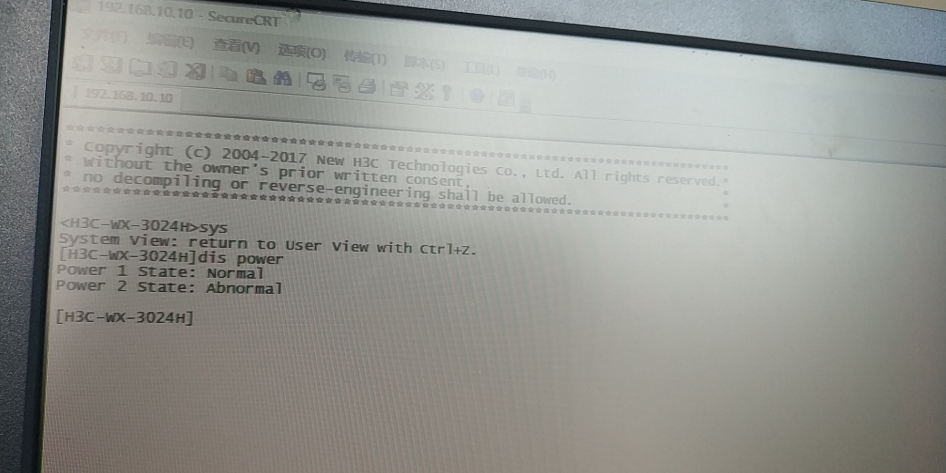 dis power检查电源状态是否正常。
