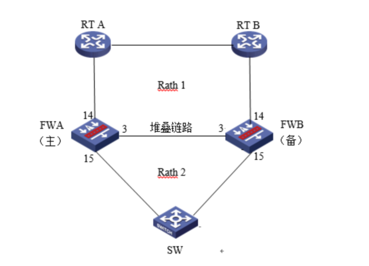 防火墙A与防火墙B堆叠后上联路由器A、B下联交换机,应用户业务需求: