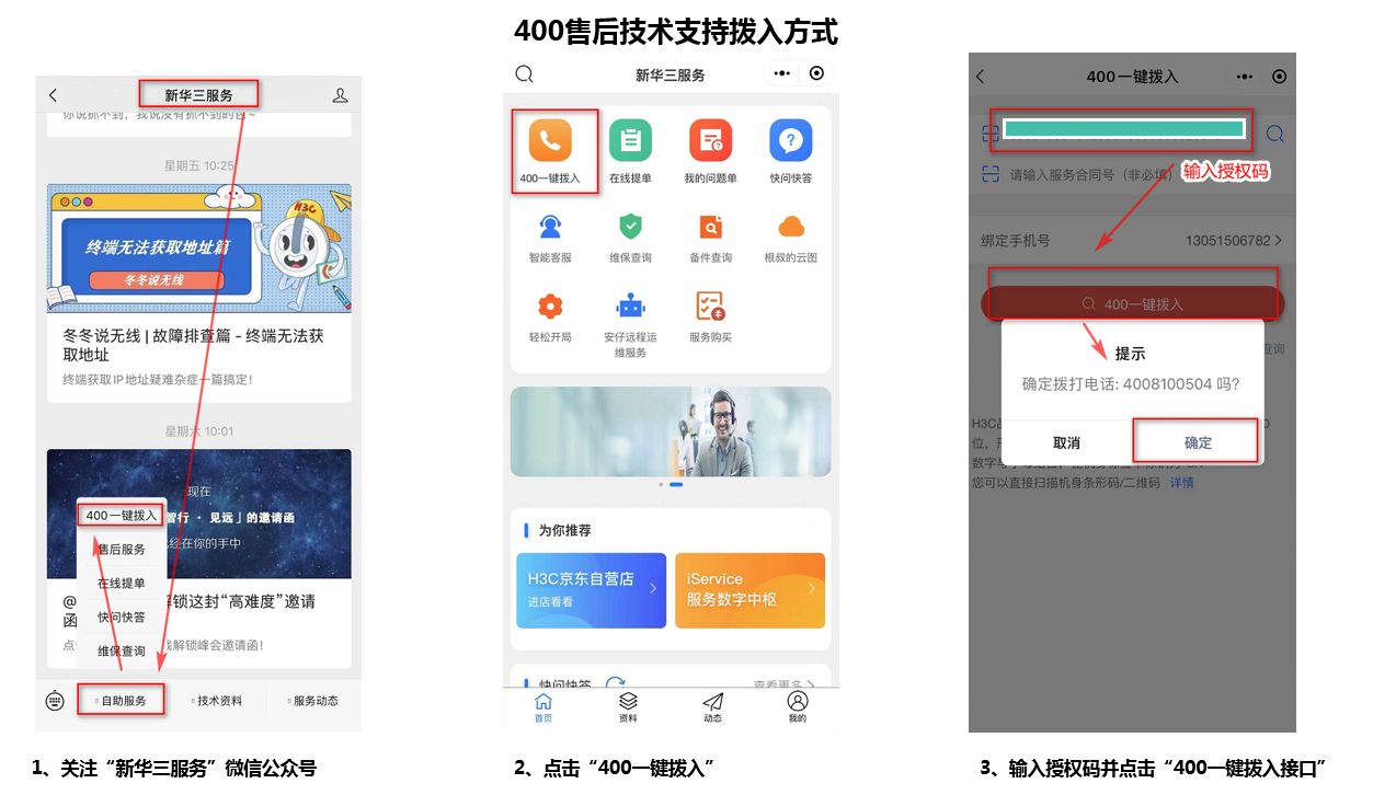 根据序列号使用400服务app,或者新华三服务公众号接入