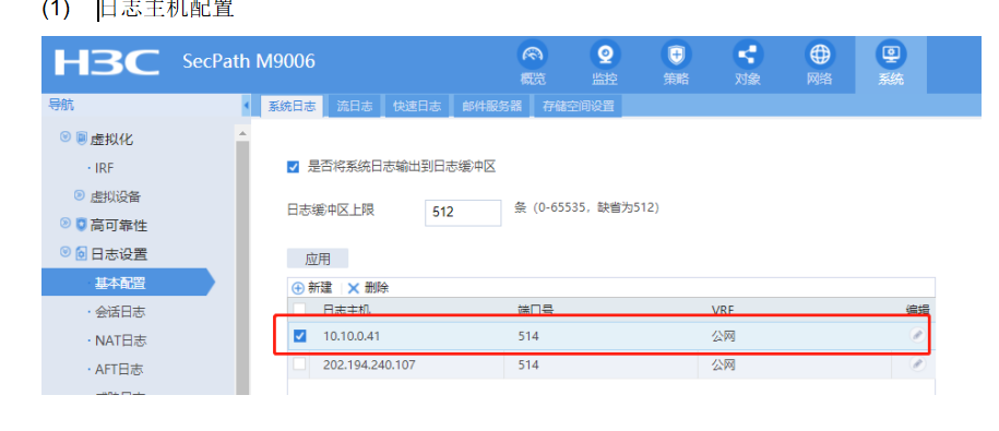 请问防火墙日志主机写ACG1000还是写态势感知的采集器IP