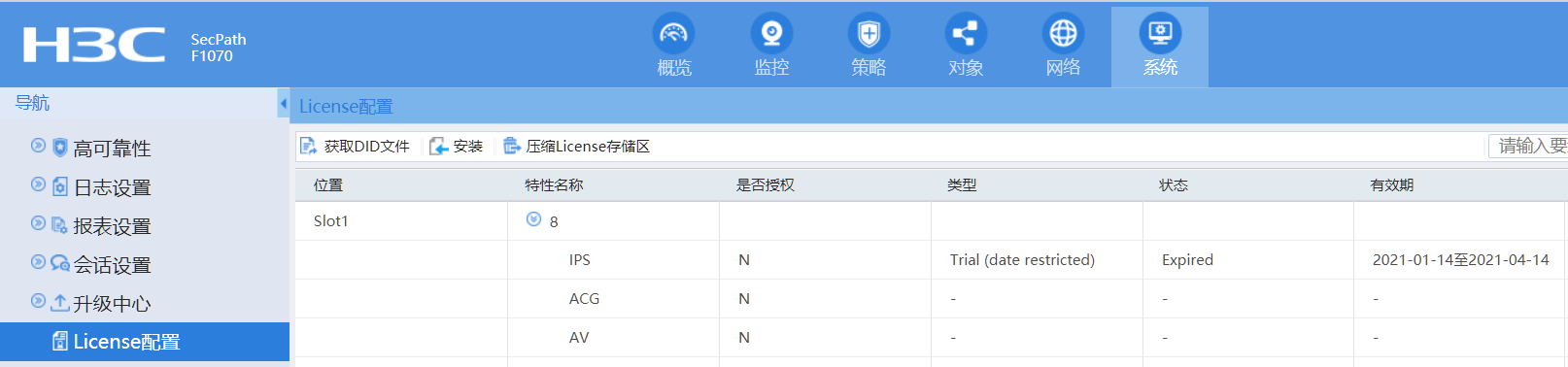 设备的系统,license设置,里边可以看到有效期,如果版本原因看不到的话,可以用license序列号打400电话了解详情