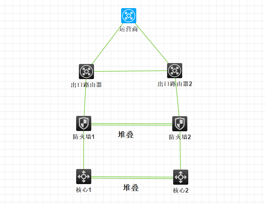 组网如图 双防火墙做堆叠,双核心做堆叠。出口是双路由器,走OSPF,出口路由器,需要怎么规划