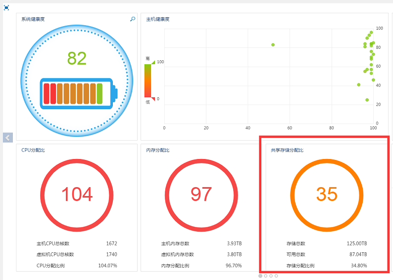 cas 概览显示的CPU,内存,共享存储。这三个分配比是怎么计算的。共享存储分配比会不会变化。