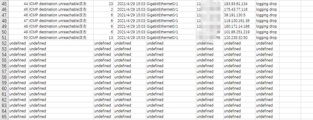 问题二:单包攻击防御导出excel表格时,50行以后的数据不存在,如图