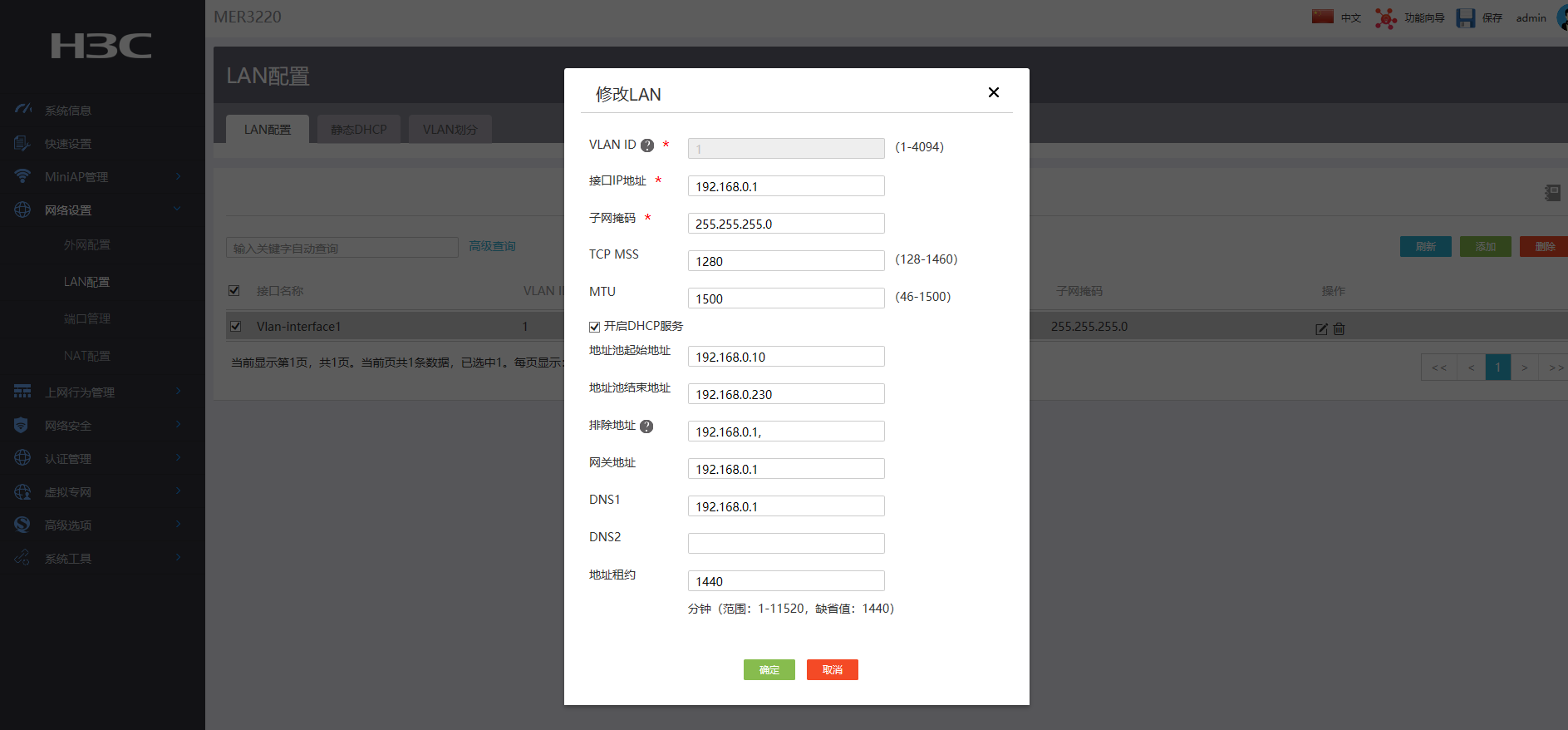 MER3220上配置,测试下192.168.1.1和192.168.0.1网段是否可以通