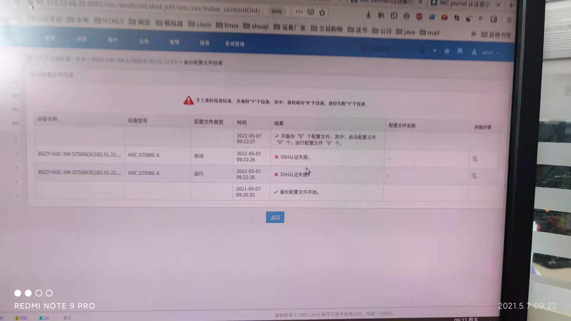 SSH是可以登录的,管理地址也能ping通,但是就是备份失败?这是怎么回事?
