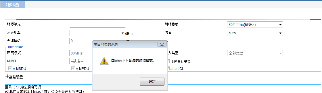 我试了,显示是5G,可是连接速度才54Mps,不是真5g速度,在原有的802.11a基础上修改射频模式802.11n(5G)和802.11ac(5G),修改不了,提示错误!