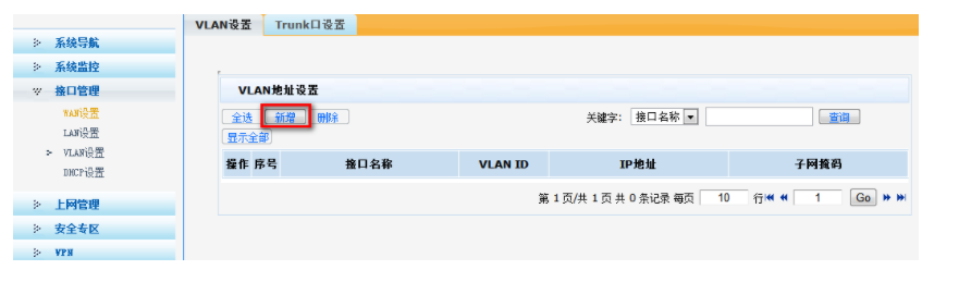 页面向导:接口管理→VLAN设置→Trunk口设置