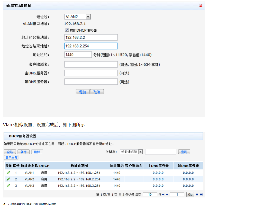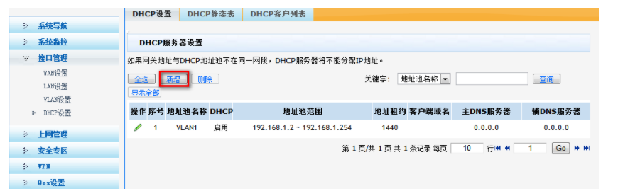 Vlan1可以不用创建,默认设备中所有的LAN口都在vlan1中,vlan1的DHCP地址池也不需要创建,默认地址池为192.168.1.2-192.168.1.254。
