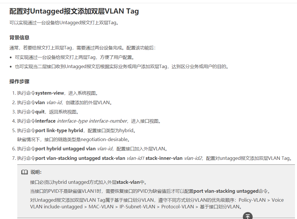 后面的命令貌似是QinQ,可以参考华三QinQ配置指导 https://www.h3c.com/cn/d_202002/1275015_30005_0.htm