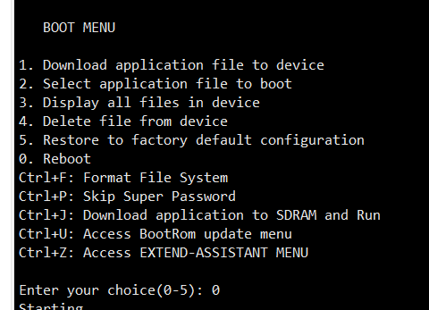 如果可以恢复出厂设置,可以选择4,然后删除掉startup.cfg这个文件,重启即可恢复出厂设置。