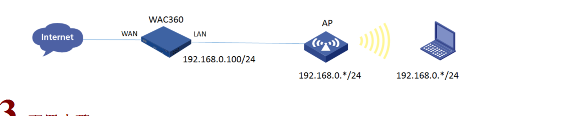 当AP的管理地址与AC的LAN口地址在同一个网段时,我们称之为二层注册。本案例实现WAC360 下联AP二层注册,配置无线加密,同时使用WAC360给下联的AP和无线客户端分配192.168.0.0/24的地址。