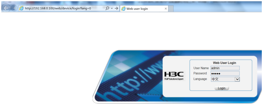 #打开浏览器后登录设备,输入:http://192.168.0.100,设备默认的登录用户名和密码都是“admin”。