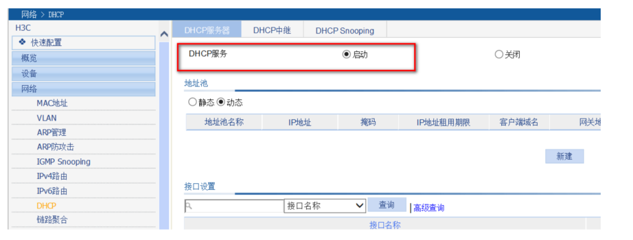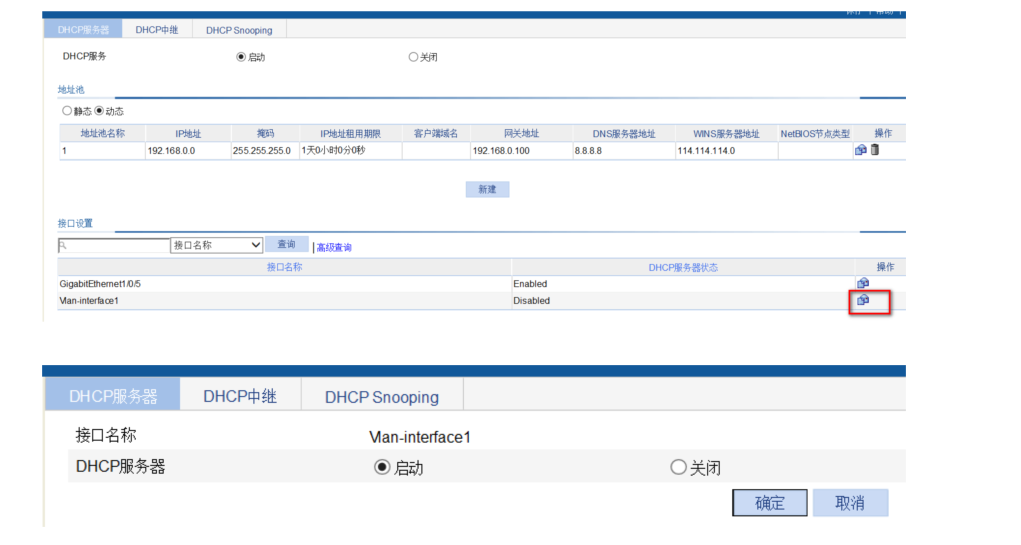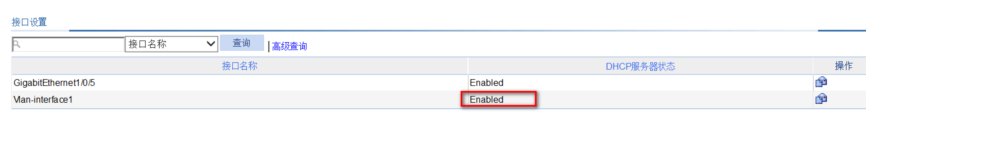 #开启后,接口的DHCP服务器状态显示为Enable。