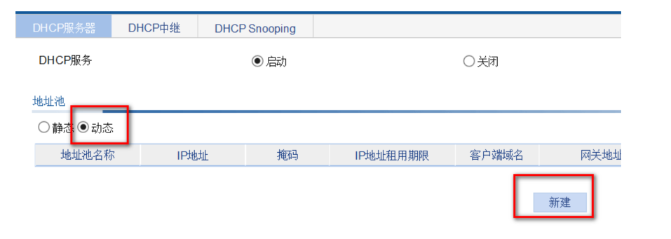 #选择地址池类型为“动态”,并点击“地址池”的新建,创建地址池。
