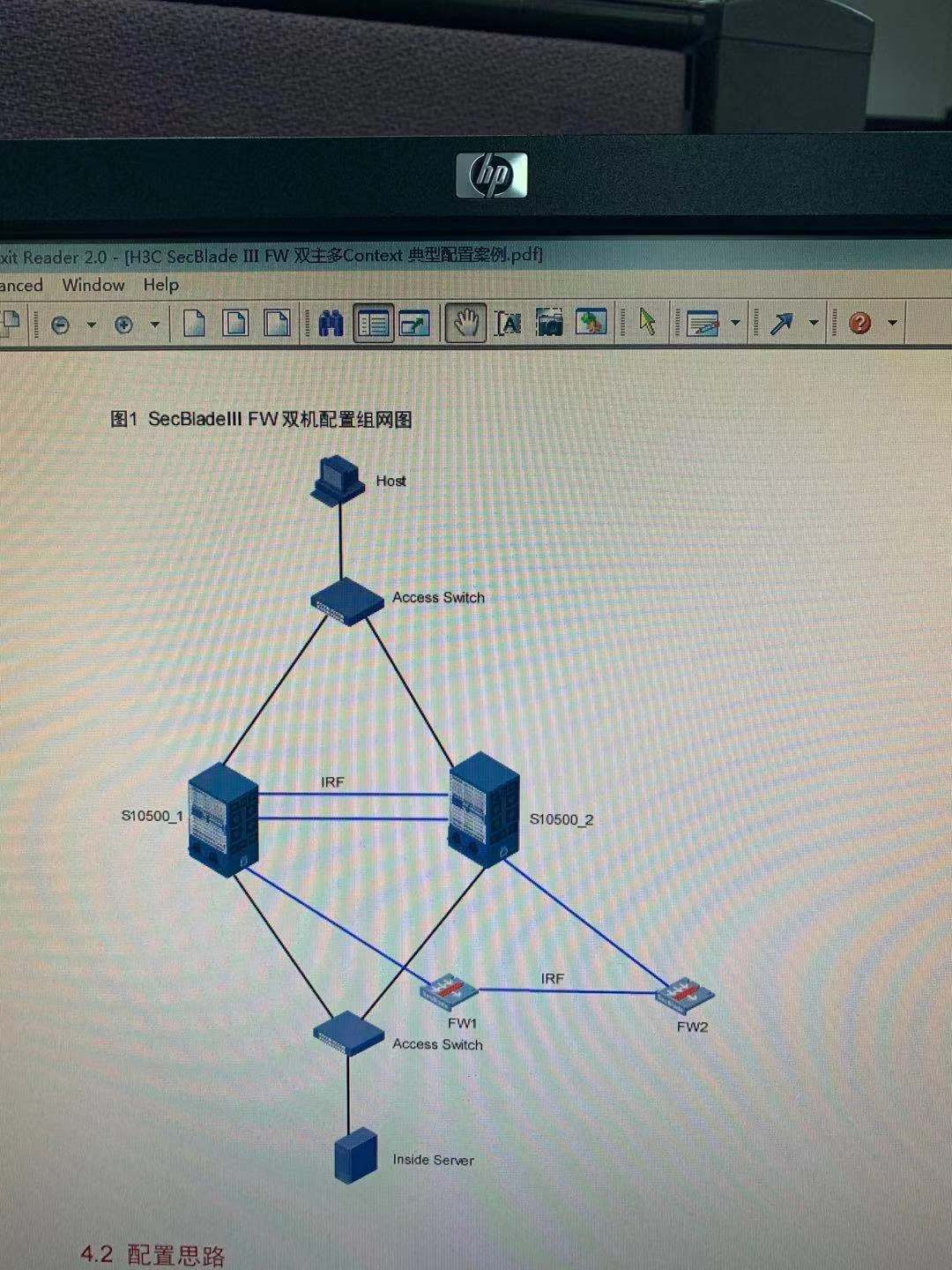我公司组网如图所示,两台10504堆叠后配置了堆叠分裂检测(BFD mad),两块SecBlade IV NGFW也进行了堆叠,但没有配置分裂检测。