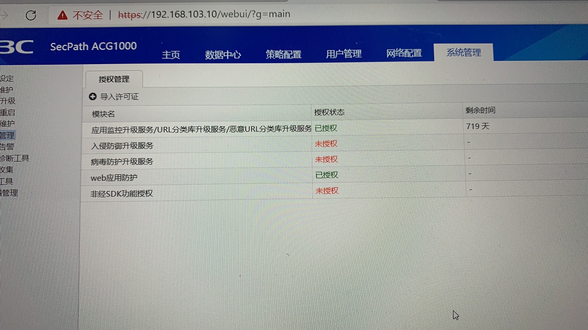 那个授权是配置到ACG的管理平台的 那个平台纳管ACG硬件的 咱们这个设备只是一个节点