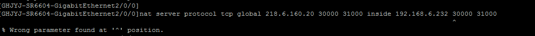 nat server protocol tcp global 218.6.160.20 30000 31000 inside 192.168.6.232 30000 31000