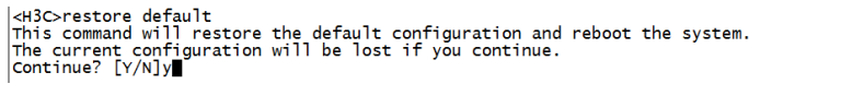 进入命令行之后,输入restore default,按照提示输入Y,之后设备会自动重启,重启后,就恢复出厂设置了。