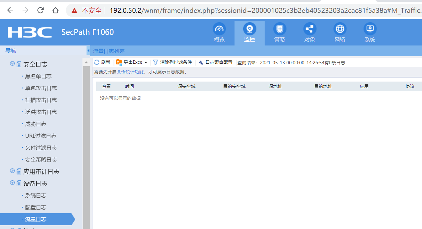 F1060防火墙流量日记没有记录,会话统计已经开启。