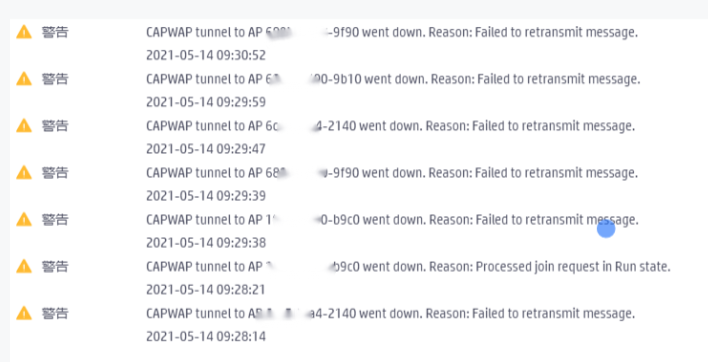 cawap隧道建立失败,这种情况,检查下AP注册到AC中间链路的质量、限速等,cawap隧道重传失败,要么是流量太大,丢包了,要么是链路质量有问题