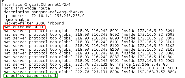 g1/0/4是内网接口,假如有一个ip包从内网出发即src:172.16.60.157 8080,des:218.93.216.242: 8887,到接口g1/0/4上面是不是将src转换为172.16.1.1(端口待定),然后如果符合nat server.....就重新转换到内网,如果没有的话就不转换回来。是不是所有的报文到这个接口原地址都转换为172.16.1.1