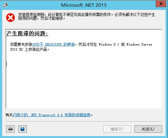 环境检查未通过,需要安装.Net Framework 4.6,操作系统本身角色只有.Net Framework 4.5,所以我们需要到微软官网下载.Net Framework 4.6进行安装。官网的这个去哪儿下载