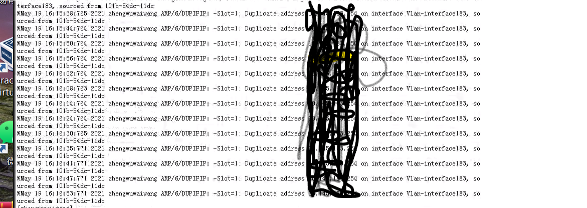 ip地址冲突了,将设备的接口地址修改下,然后display arp查下对应终端,确认下是否对应终端地址配置问题