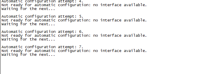 Automatic configuration attempt: 16. Not ready for automatic configuration: no interface available. Waiting for the next...