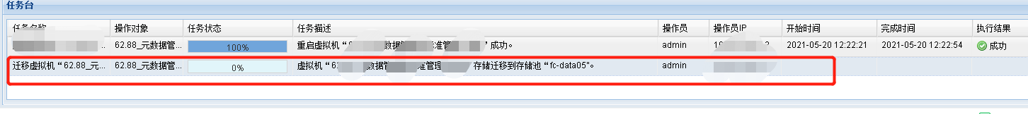 对比一下目的卷里该虚拟机存储的大小,确认完全迁过来的话,可以重启tomcat服务,老版本应该是tomcat6服务,在cvm执行service tomcat6 restart。这个动作会终止所有进行中的任务(迁移、开关机、备份、快照等,且cvm首页会有几分钟不能访问,但不影响业务)。现在已经是7.0版本了,建议用新版本