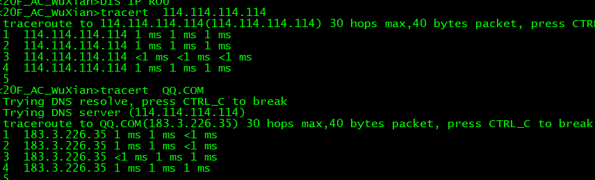 WX3010E无线模块下路由追踪每一跳都为相同的地址,但有线模块下的路由追踪是正常的,有线模块上有两个int vlan 接口下配置nat转换,能ping的通目的地址