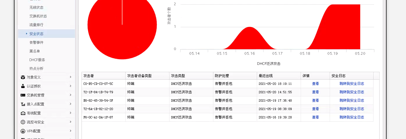 最近老是遇到DHCP泛洪攻击,找不到什么方法来防御它。请大家帮帮忙看一下如何操作,谢谢!(我这款NAC6200 检测到这个问题,但版本太低本身没有防御功能。可以在主交换机上用什么命令来防御呢?