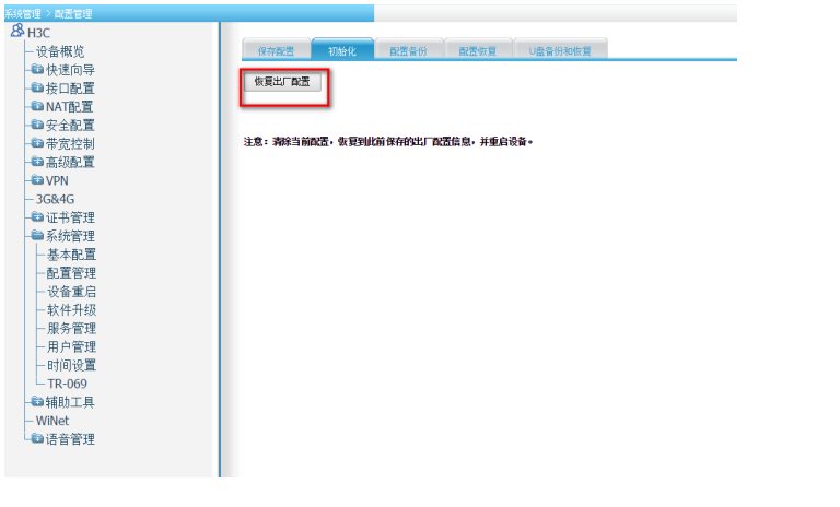 The saved configuration file will be erased. Are you sure? [Y/N]:y //设备提示保存的配置将会被删除,是否继续。