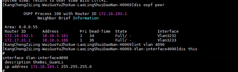 显示邻居信息? dis cu找下ospf视图下配置
