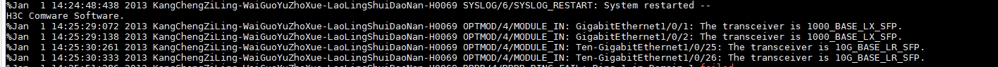 [H3C]dis transceiver alarm interface GigabitEthernet 1/0/1 //查看光口的告警信息