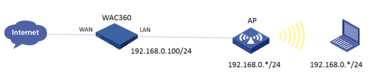 当AP的管理地址与AC的LAN口地址在同一个网段时,我们称之为二层注册。本案例实现WAC360 下联AP二层注册,配置无线加密,同时使用WAC360给下联的AP和无线客户端分配192.168.0.0/24的地址。