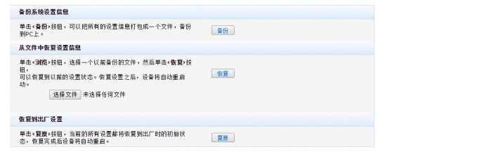 注意:恢复将清空全部配置,设备所有配置将恢复到出厂配置,请谨慎操作。