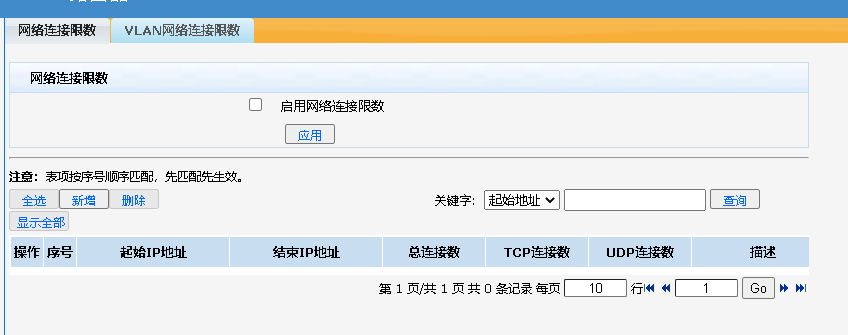 启用VLAN网络连接限数功能(主页面。选中“启用VLAN网络连接限数”复选框,单击<应用>按钮生效) | |
