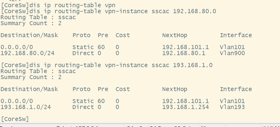 检查策略这些VPN实例有没有放通,路由也要带VPN实例。带了VPN实例后,所有配置都需要单独放通相关VPN实例。