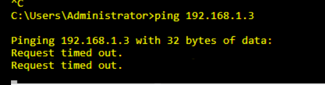 主机ip 192.168.1.2 ping返回time out 路由 安全域均已配置