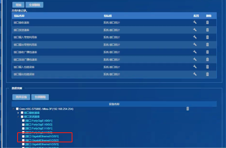 为什么IMC监控核心S7506E(堆叠)时只能选择其中一台核心的接口1/2/0/40,不能选择第二台核心上的接口2/2/0/40(不显示出来)。