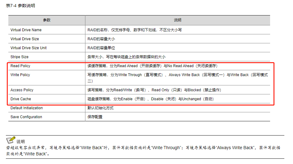 2、阵列卡缓存开启与关闭参见手册表7.4前后:
