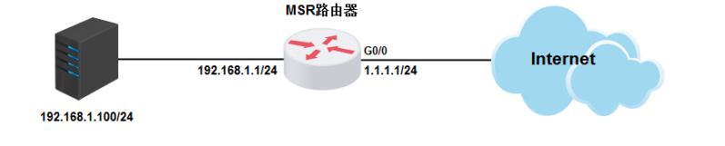 将内网服务器映射到公网,使得公网侧的用户可以通过MSR路由器的WAN接口+端口号来访问内网的WEB服务器,本案例中,服务器的服务端口为80,服务器内网地址为192.168.1.100,路由器外网地址为1.1.1.1,映射的外网端口为8080。