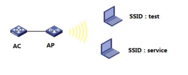 AC作为DHCP服务器为无线客户端分配IP地址。AP发射两个无线信号,SSID分别为“test”“service”。当无线客户端连接到“test”时,获取到192.168.10.0/24网段的IP地址,当无线客户端连接到“service”时,获取到192.168.20.0/24网段的IP地址,本案例以AP已成功注册为前提。