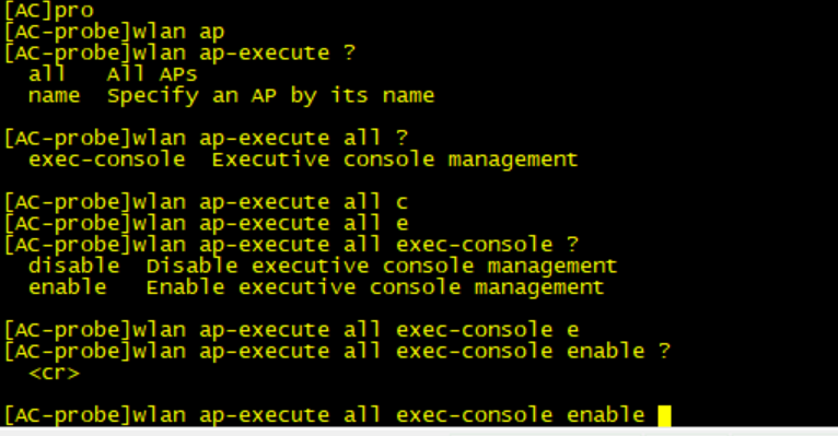 [AC-probe] wlan ap-execute ap-name exec-console enable