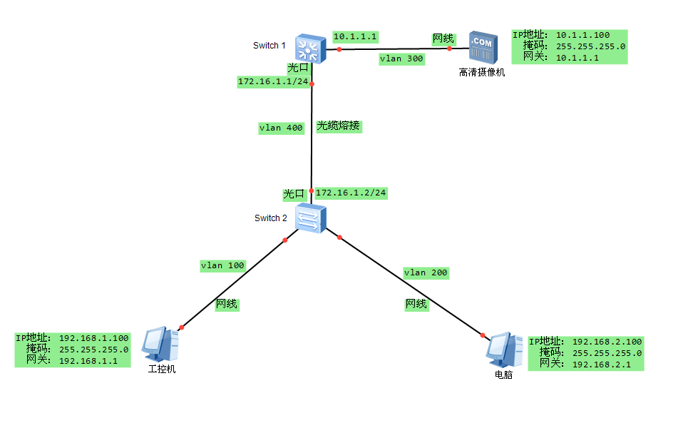 ③工控机(192.168.1.100)可以通过10.1.1.1的IP远程登录Switch