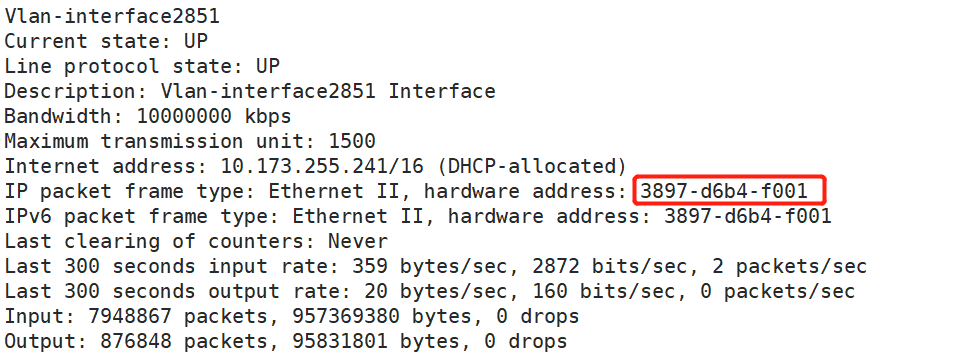 show int vlan 2851 显示出来的这个mac地址和设备的本身mac 有什么区别?