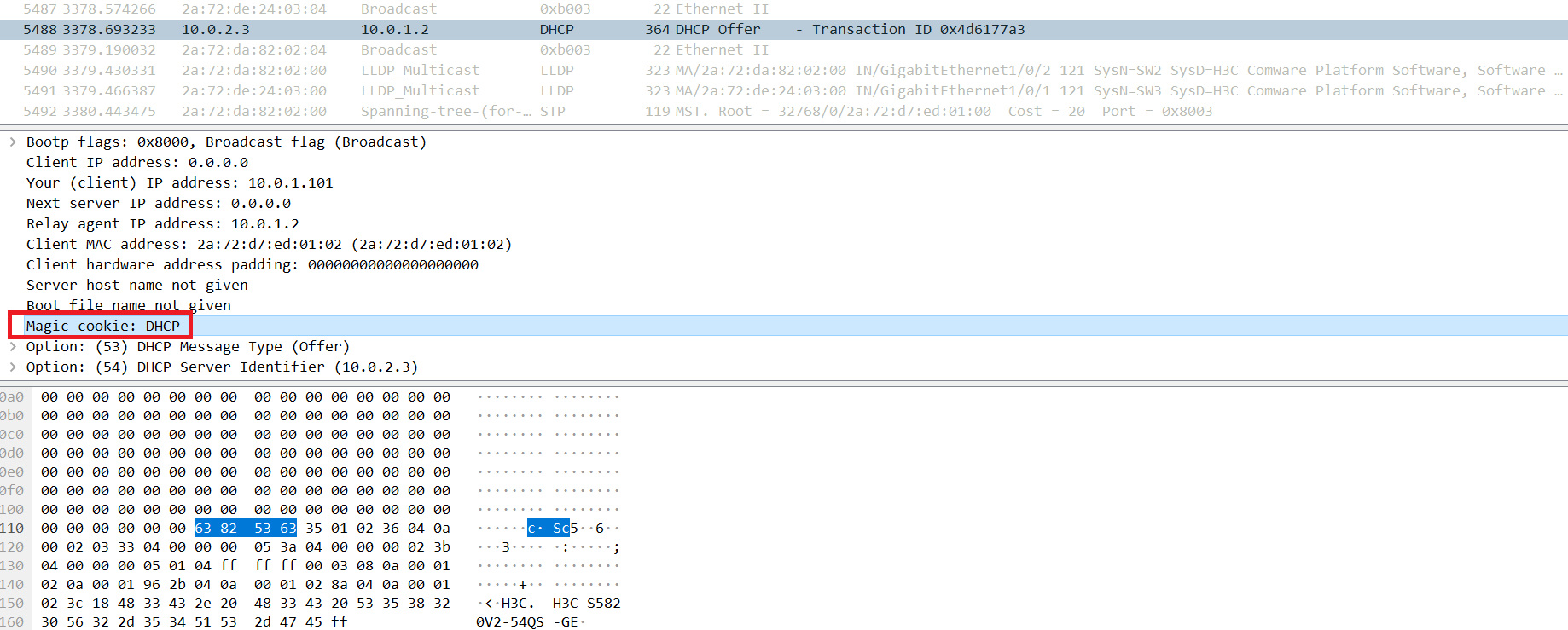 有大佬知道dhcp报文里的magic COOKIE(占4个字节,固定值十六进制63 82 53 63)是用来干什么的吗?简单解释一下就行,不要直接发文档。合理的答案一定采纳,谢谢。