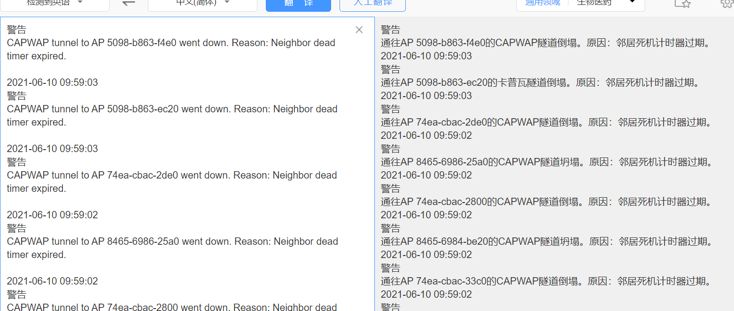 这个提示就是长时间收不到AP消息,二层注册和三层注册都差不多