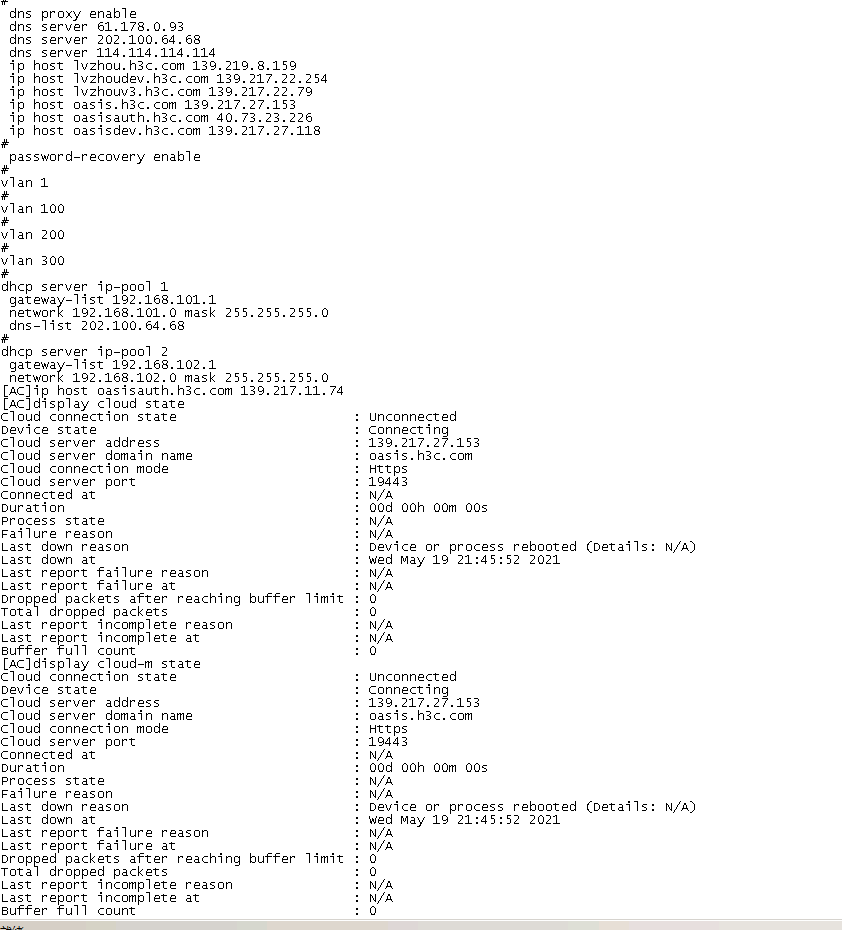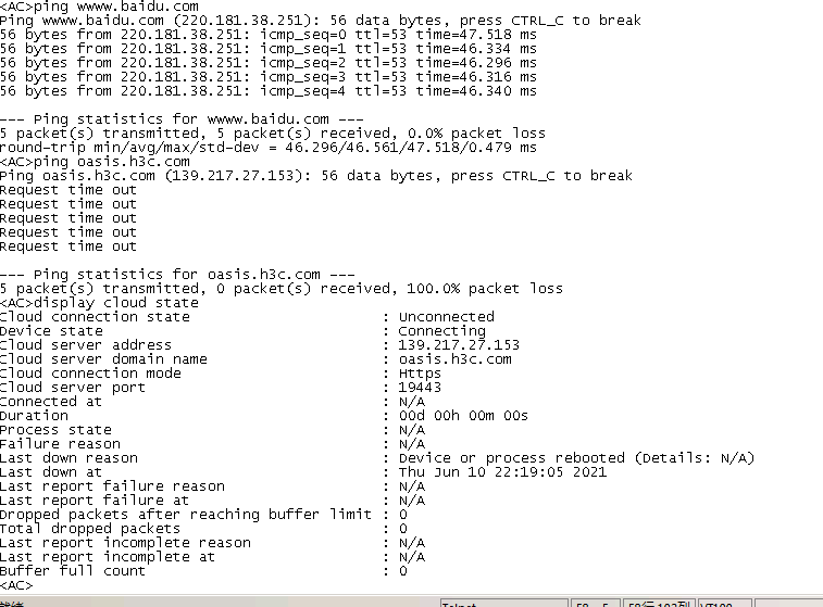 配置这条命令试试[H3C]cloud-management server domain oasis.h3c.com